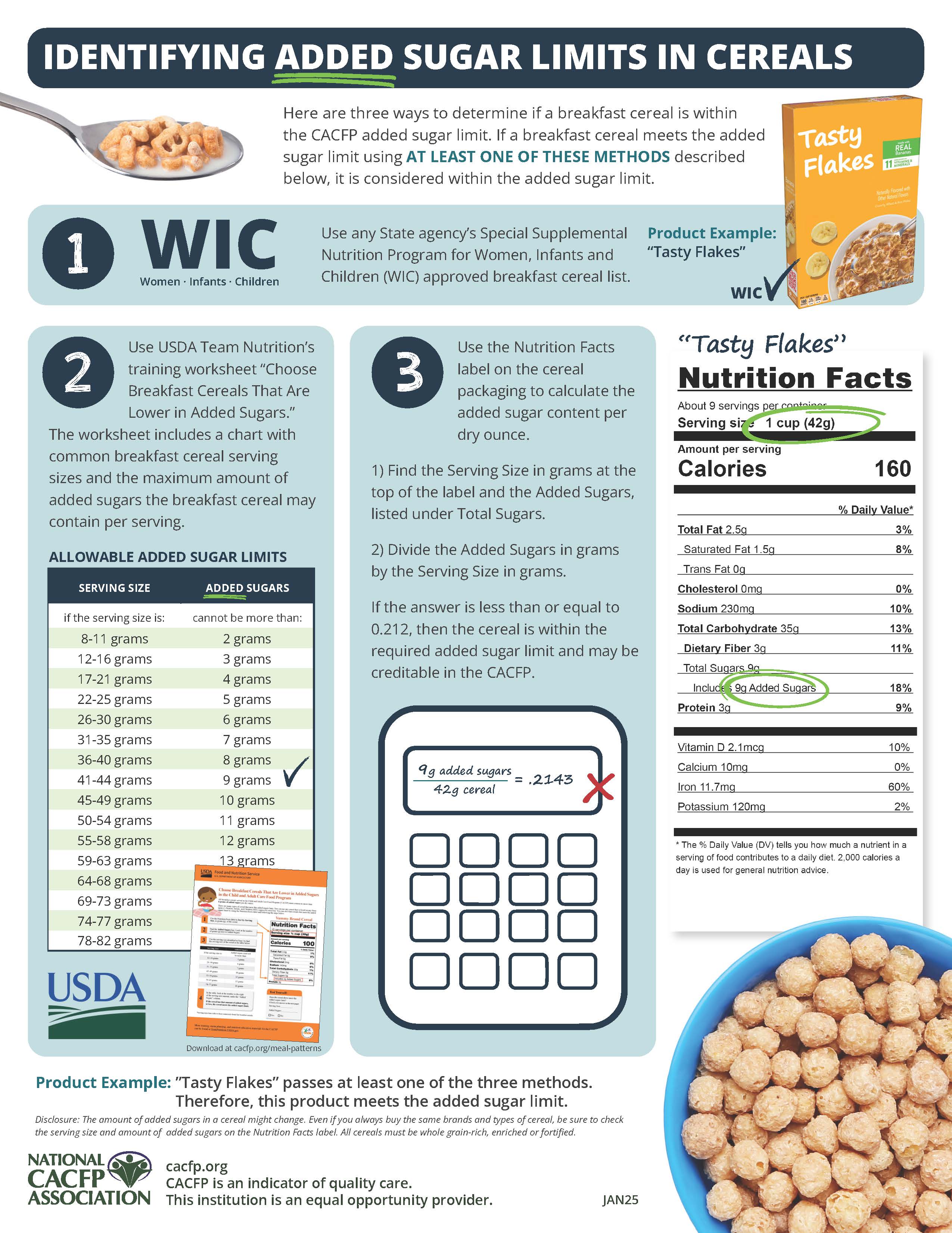 USDA recently revised the CACFP meal patterns to ensure children and infants have access to healthy, balanced meals throughout the day. Under the updated child and adult meal patterns, meals served will include a greater variety of vegetables and fruit, more whole grains, and less added sugar and saturated fat. The changes to the infant meal pattern support breastfeeding and the consumption of vegetables and fruit without added sugars.