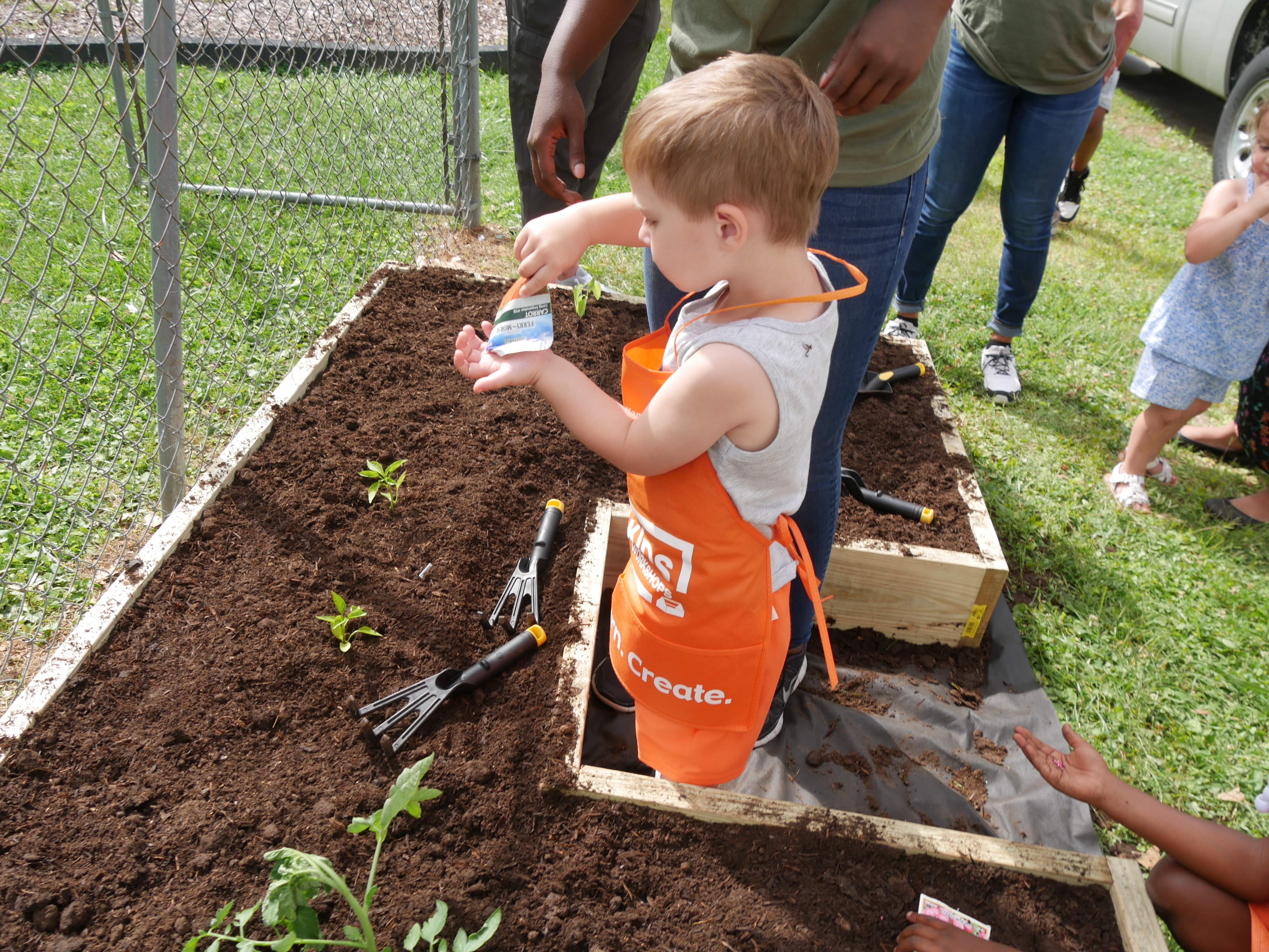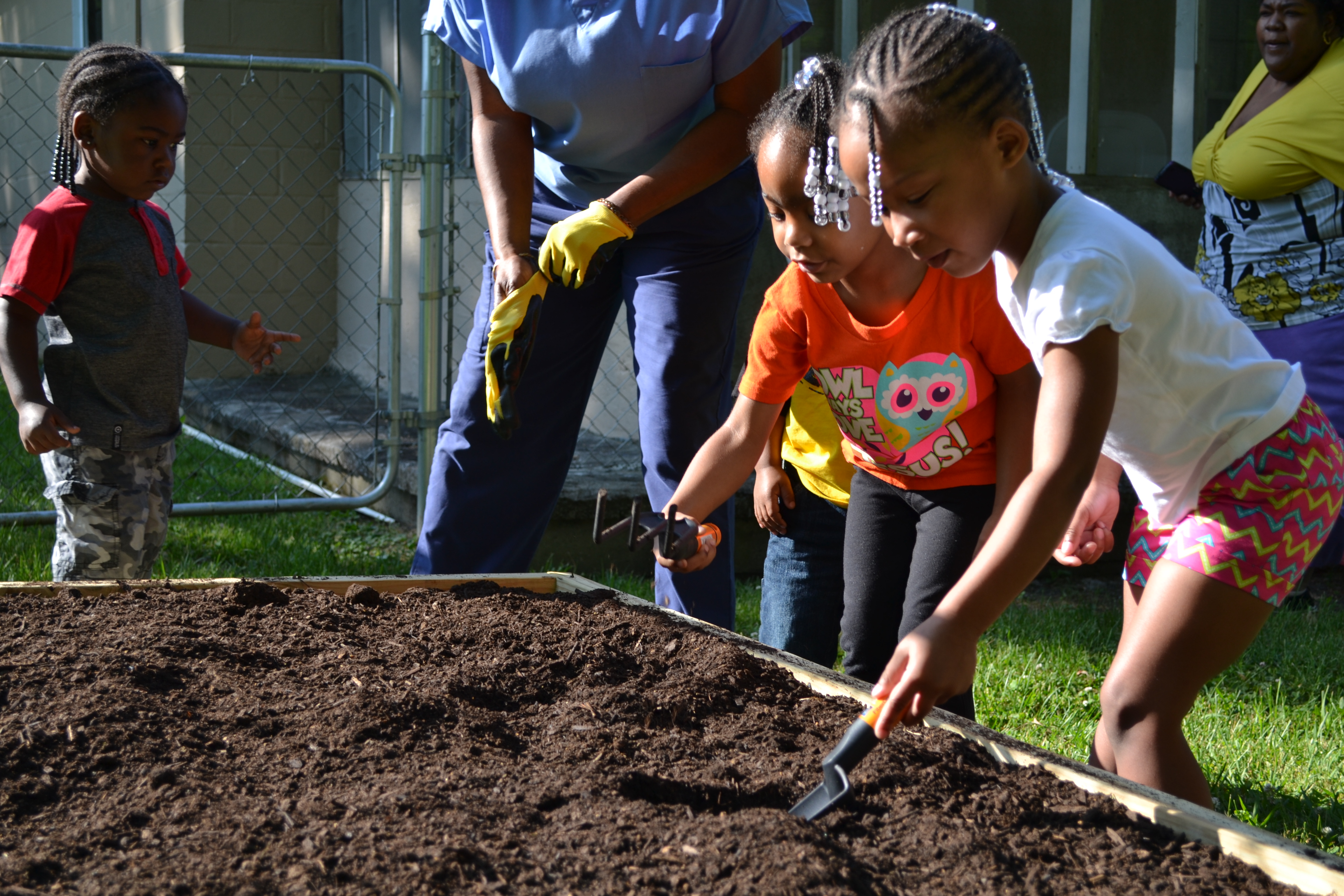 Taking Root Together provides gardening supplies and educational resources to area childcare providers and families who fit certain eligibility criteria. Our staff installs a raised garden bed, fills it with nutrient rich top soil then sows the seeds that will produce nutritious fruits and vegetables for years to come. In addition, gardening tools and equipment are provided with a garden to fork themed preschool curriculum that helps reinforce the gardening concepts with young children.