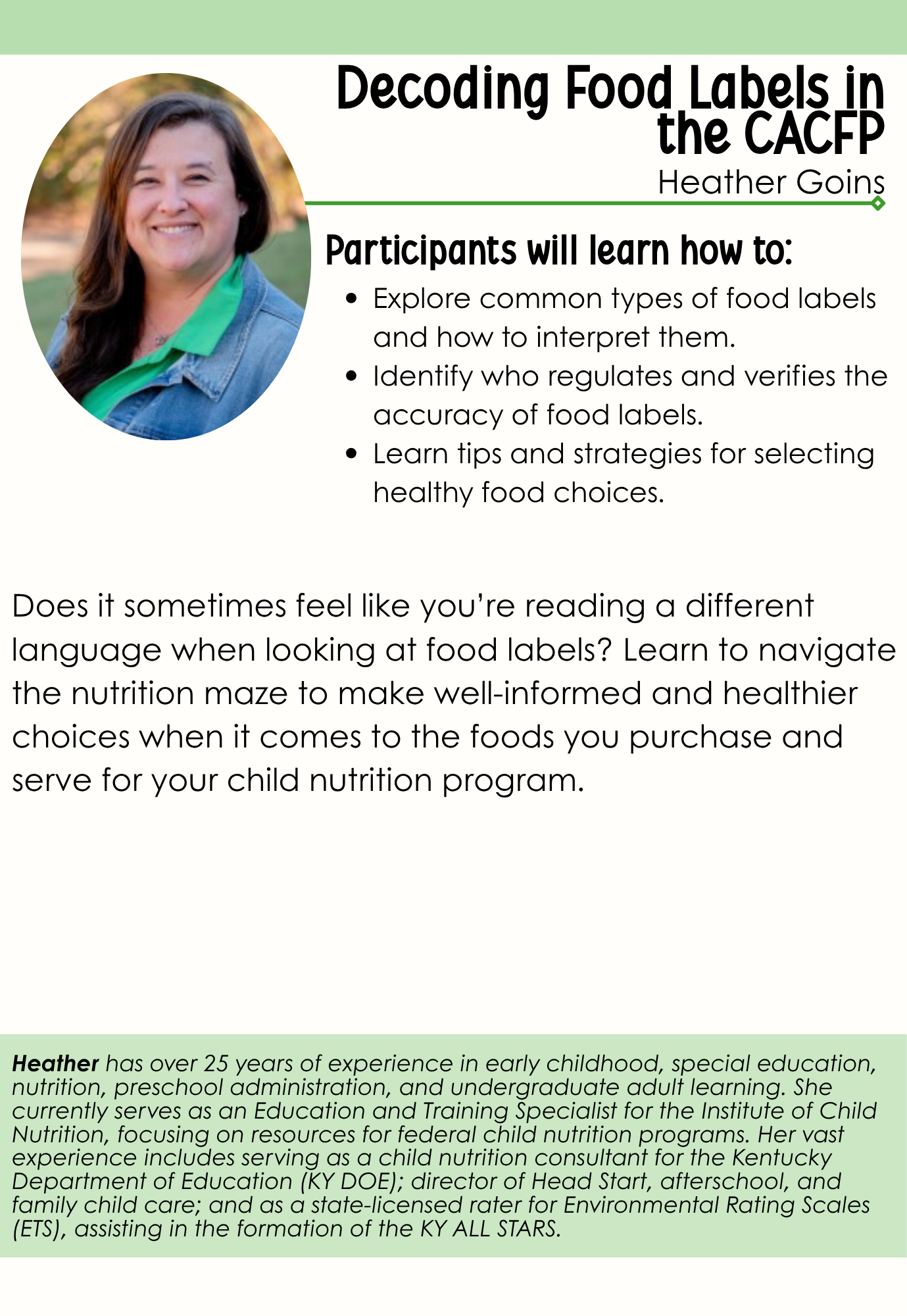 Mrs. Senta Hester is the founder of Our Daily Bread CACFP and the heart behind the mission. For three decades, she has poured her passion into supporting children, educators, and the communities they serve. This conference is a celebration of the lasting impact of that work and the people and children it continues to uplift.